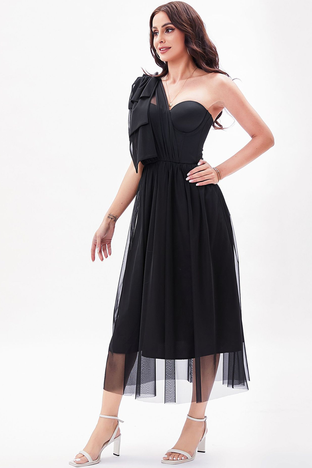 Elegant Black A-Line One Shoulder Corset Party Dress