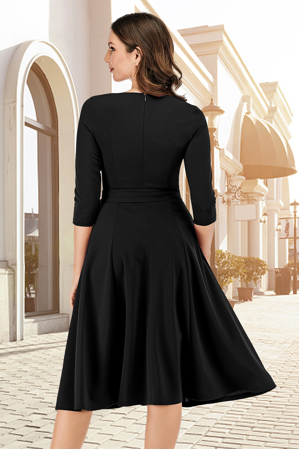 Modest 3/4 Sleeves Black Vintage Wedding Guest & Cocktail Dress