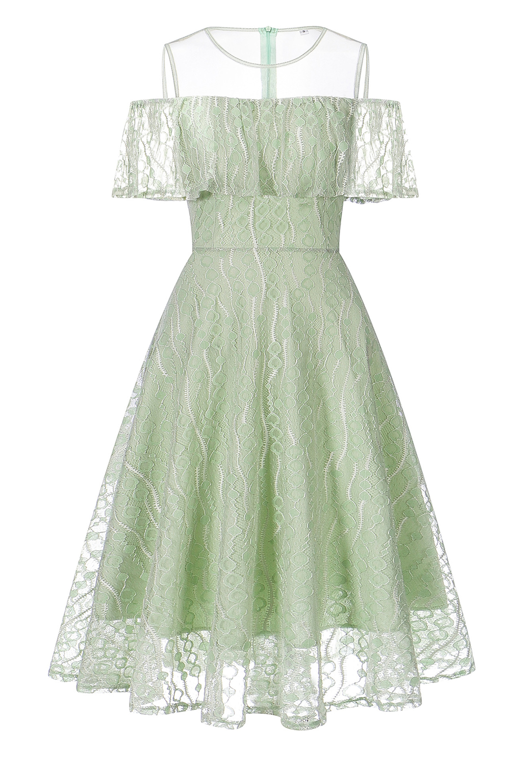 Vintage Green A-Line Lace Dress | Ruffle Shoulder Trim