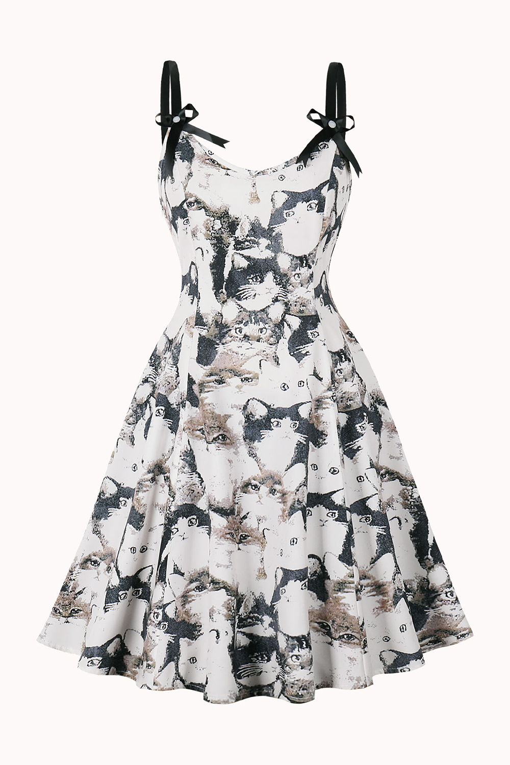 Vintage Flirty Cute White Spaghetti Strap A-Line Midi Dress
