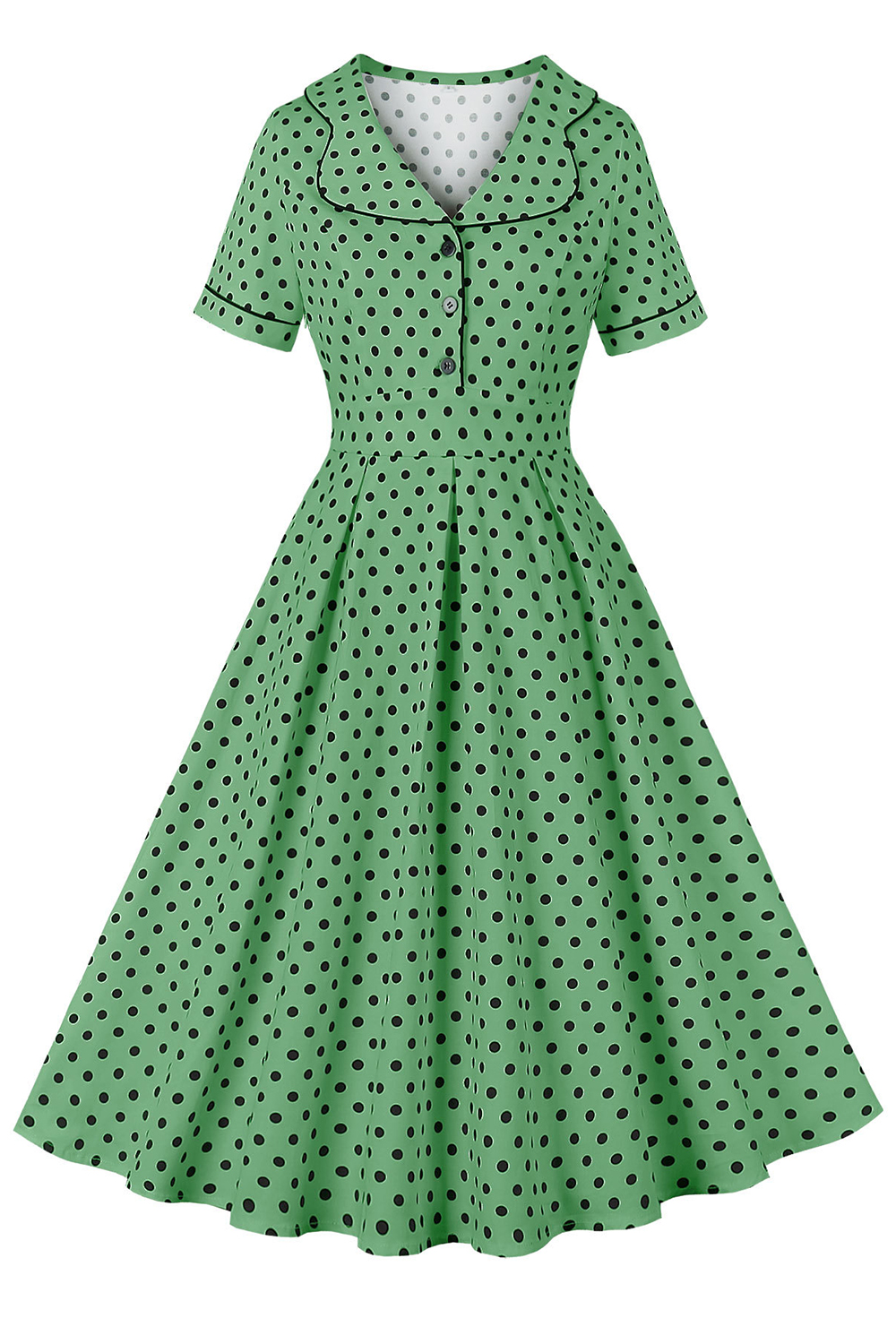 Versatile Vintage Green Casual, Formal/Party Occasions Dress with Polka Dot