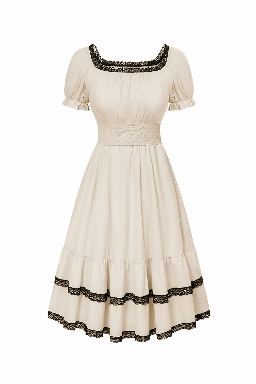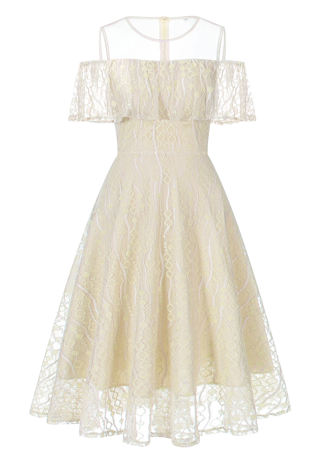 Vintage Apricot A-Line Lace Dress | Ruffle Shoulder Trim