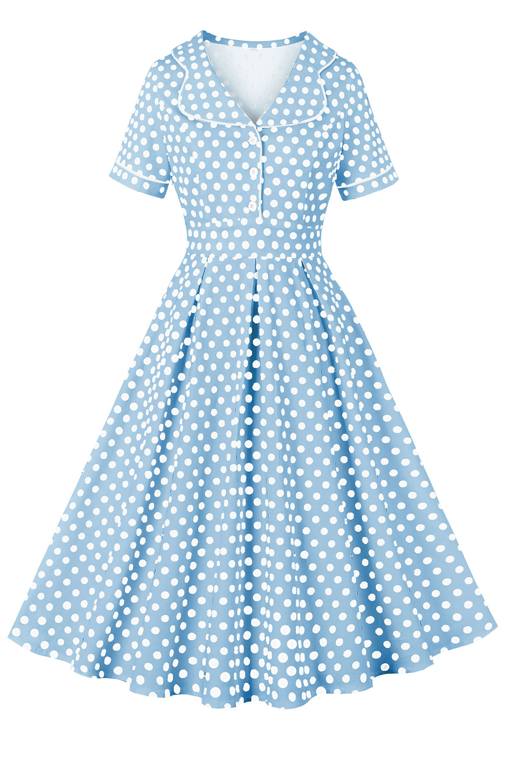 Vintage Blue 1950s A-Line Swing Dress with White Dot