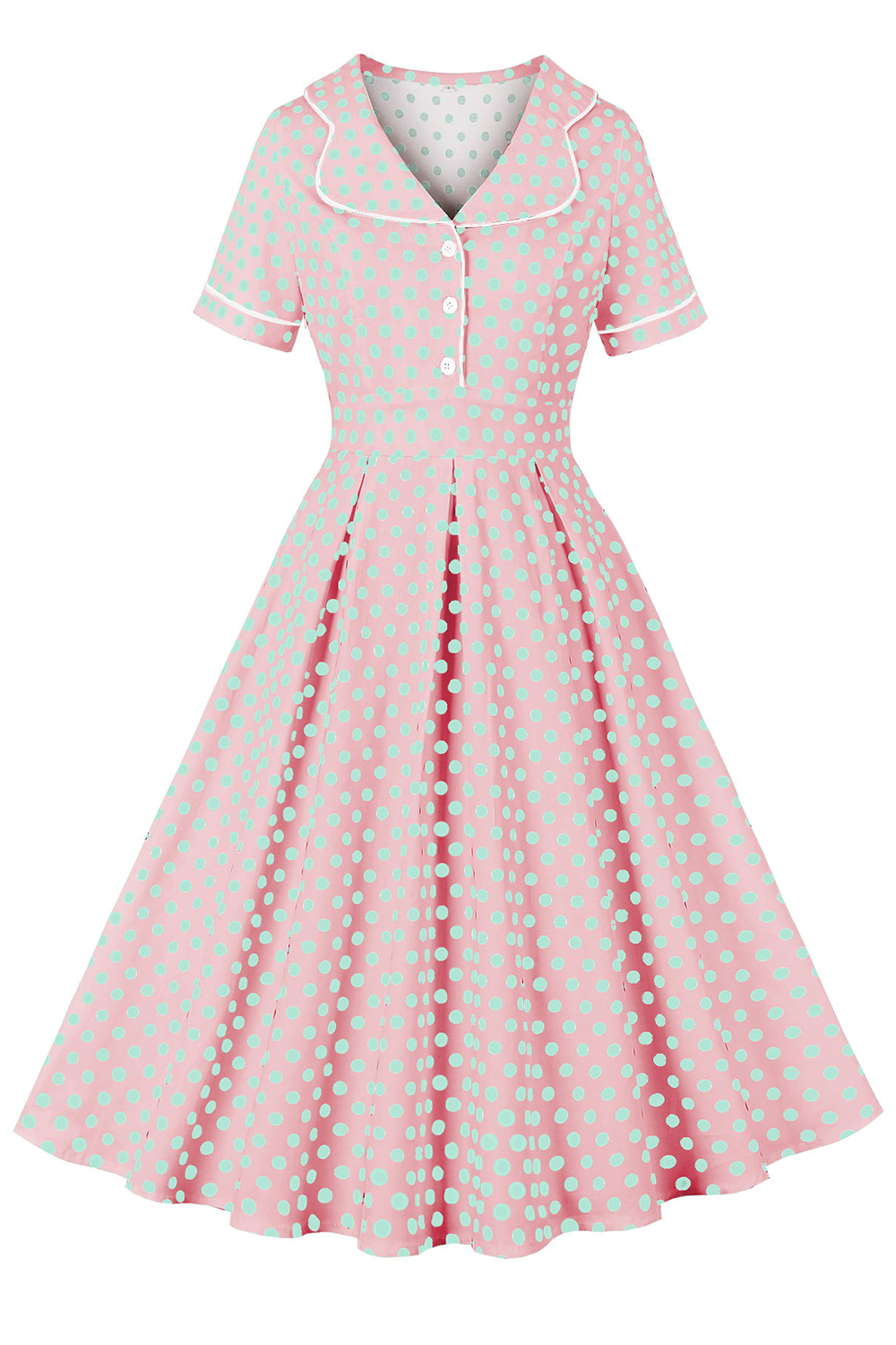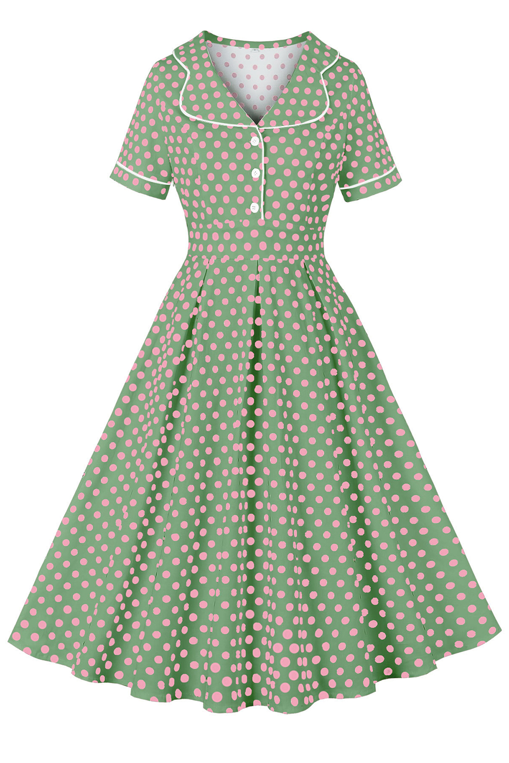 Versatile Vintage Green&Pink Casual, Formal/Party Occasions Dress with Polka Dot