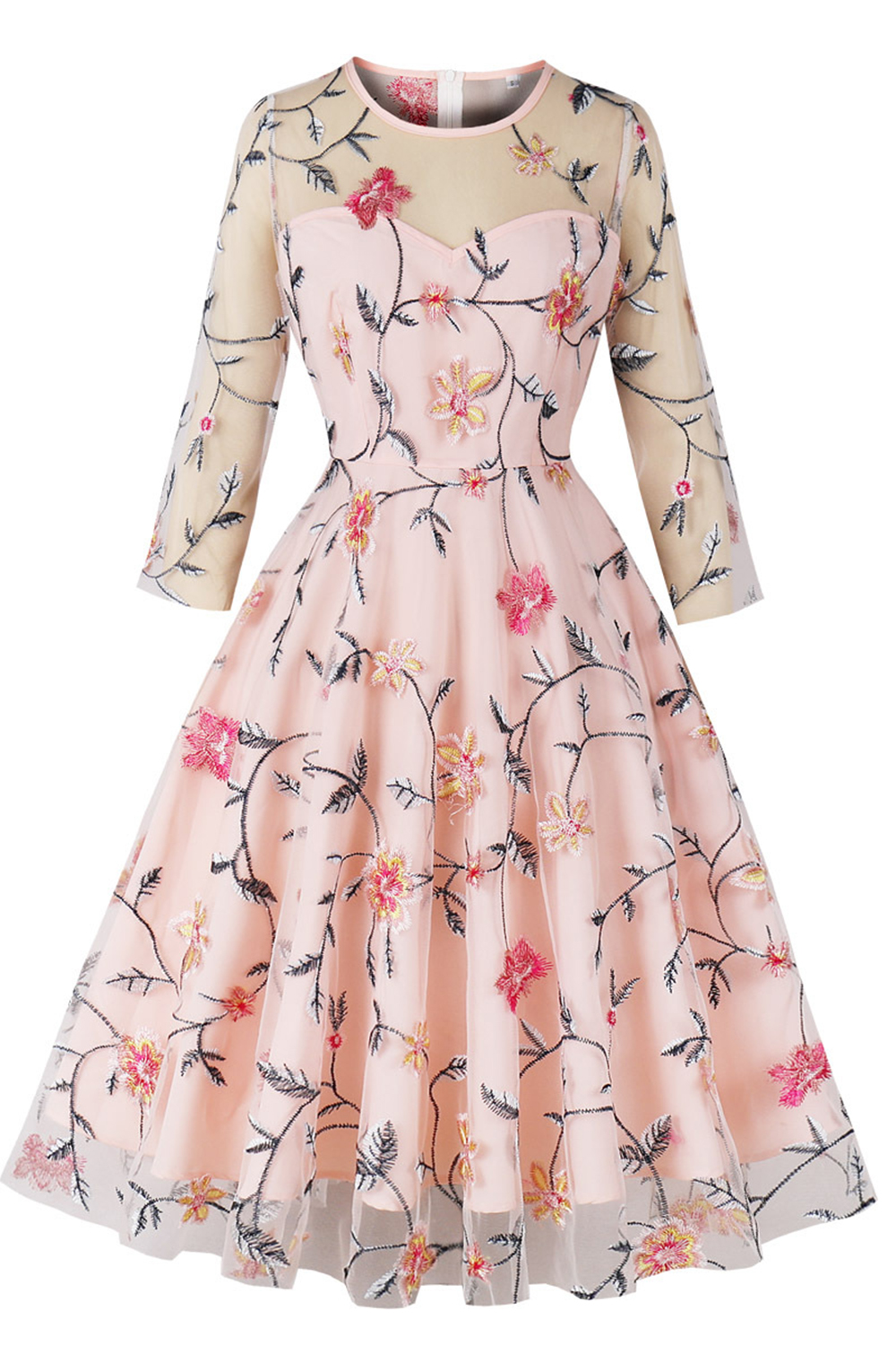 Versatile Vintage Blush Floral Midi Dress for Casual, Formal/Party Occasions